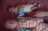 Philippe semble avoir beaucoup de plaisir à bouger ses pieds et ses mains alors j'essaie de faire comme lui. Malheureusement pour moi le cousin ne semble pas remarquer la présence de ma face sous sa main. |