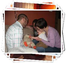 Nous voici donc sur le lit de papa et maman. Pardonnez mon manque d'intérêt pour le cousin mais j'adore regarder les belles lumieres qui arrivent de ces petits murs transparents. |
